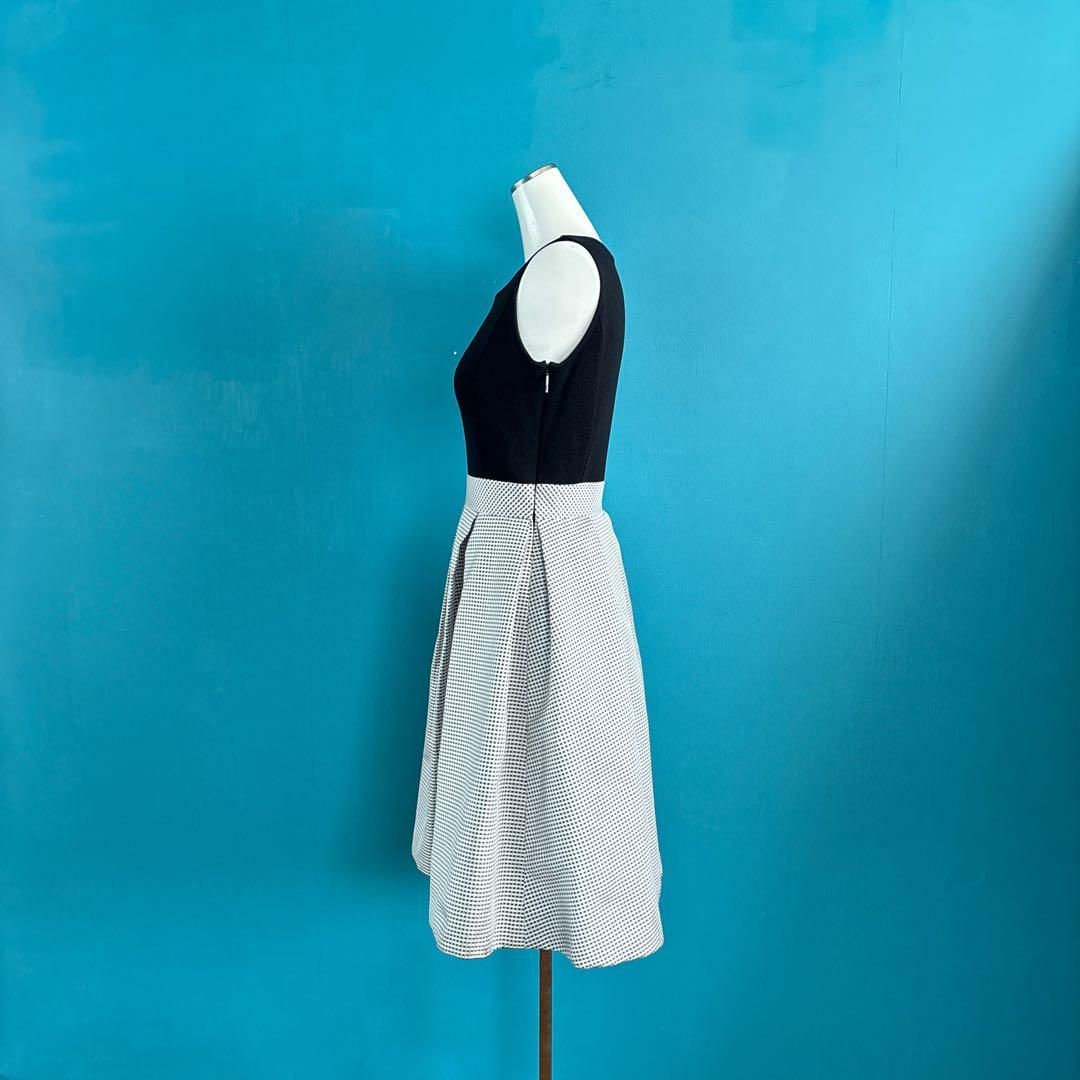 黒のノースリーブと白のチェック柄の膝丈ドッキングフレアワンピース。