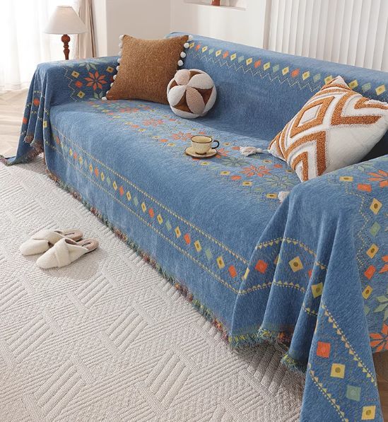 三人用ソファーカバーソファー シーツ ひざ掛け マルチカバー 180 x 340 cm ネイビー