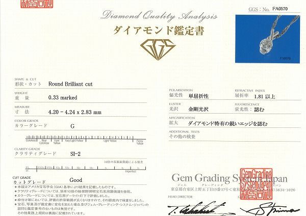 【付属品】 宝石鑑定書(ジェムグレーディングシステムジャパン)