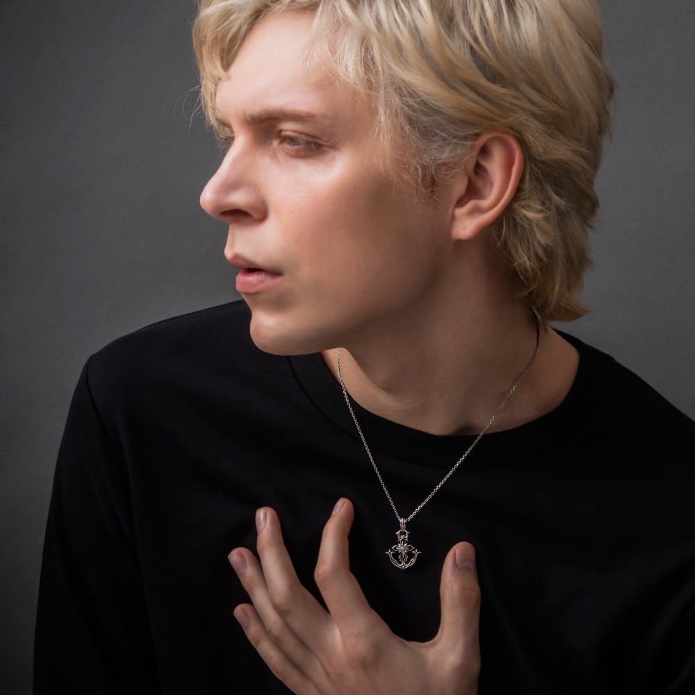 荒海に船を留めるアンカーを、端正な意匠で胸元へ。逆境に揺るがない“支え”を象るモチーフを、重厚と優雅のバランスで描いた一本です。錨のフレームに、漆黒のエナメルで縁取ったクロスを重ね、中心には北極星を思わせるスターを配して凛とした輝きを添えました。面と曲線の切り替えが光を拾い、角度ごとに陰影が立ち上がる立体的な仕上がり。素材はSV925。アトリエで地金を成形し、エナメルを丁寧に流し、丹念に磨き上げています。指先に伝わる滑らかさと、視線を射抜くシャープなエッジは、職人の手仕事の証。裏面にはブランド名と〈925〉の品質刻印を刻み、確かなクオリティを約束します。
