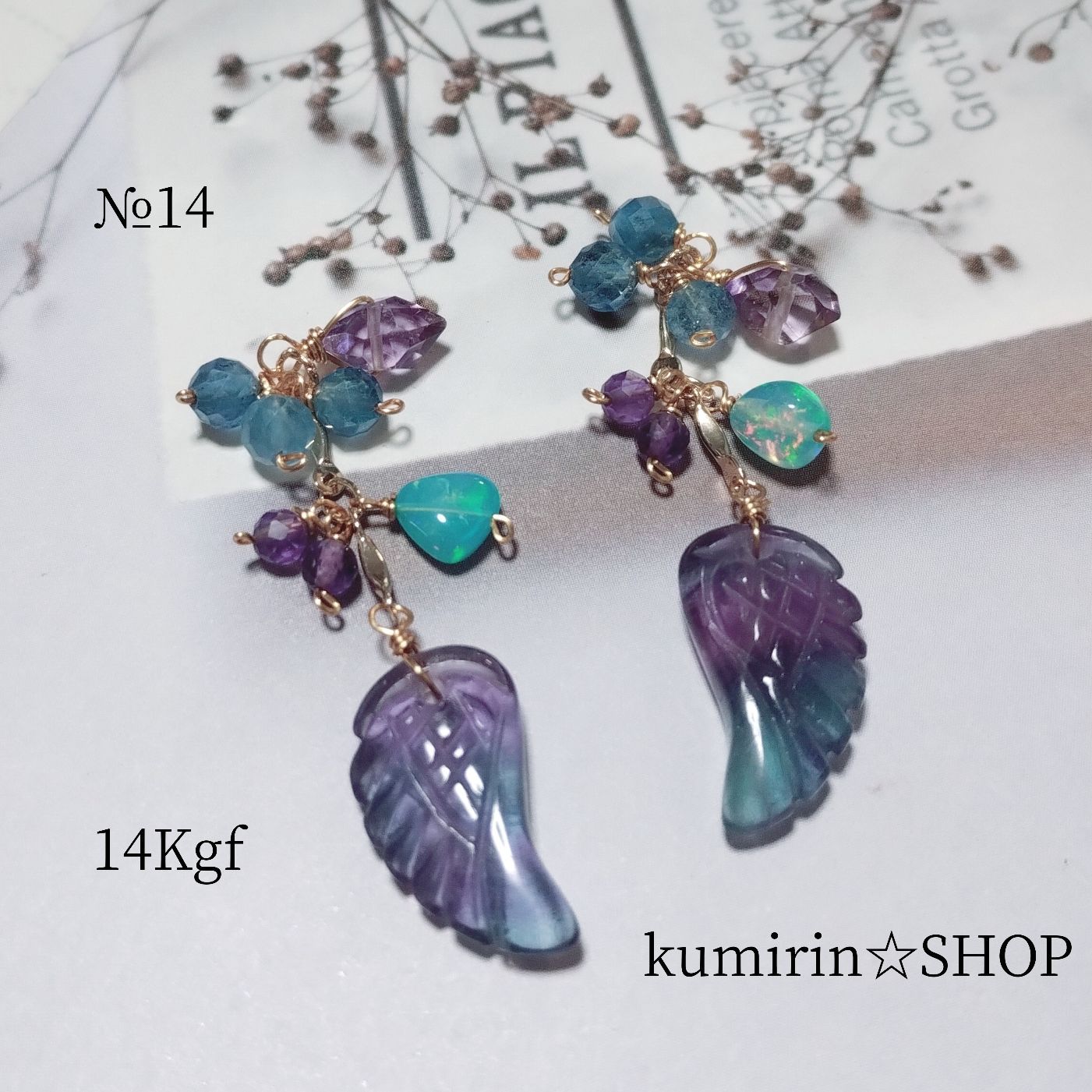 フローライト 羽 カービング 14 Kgfチャーム