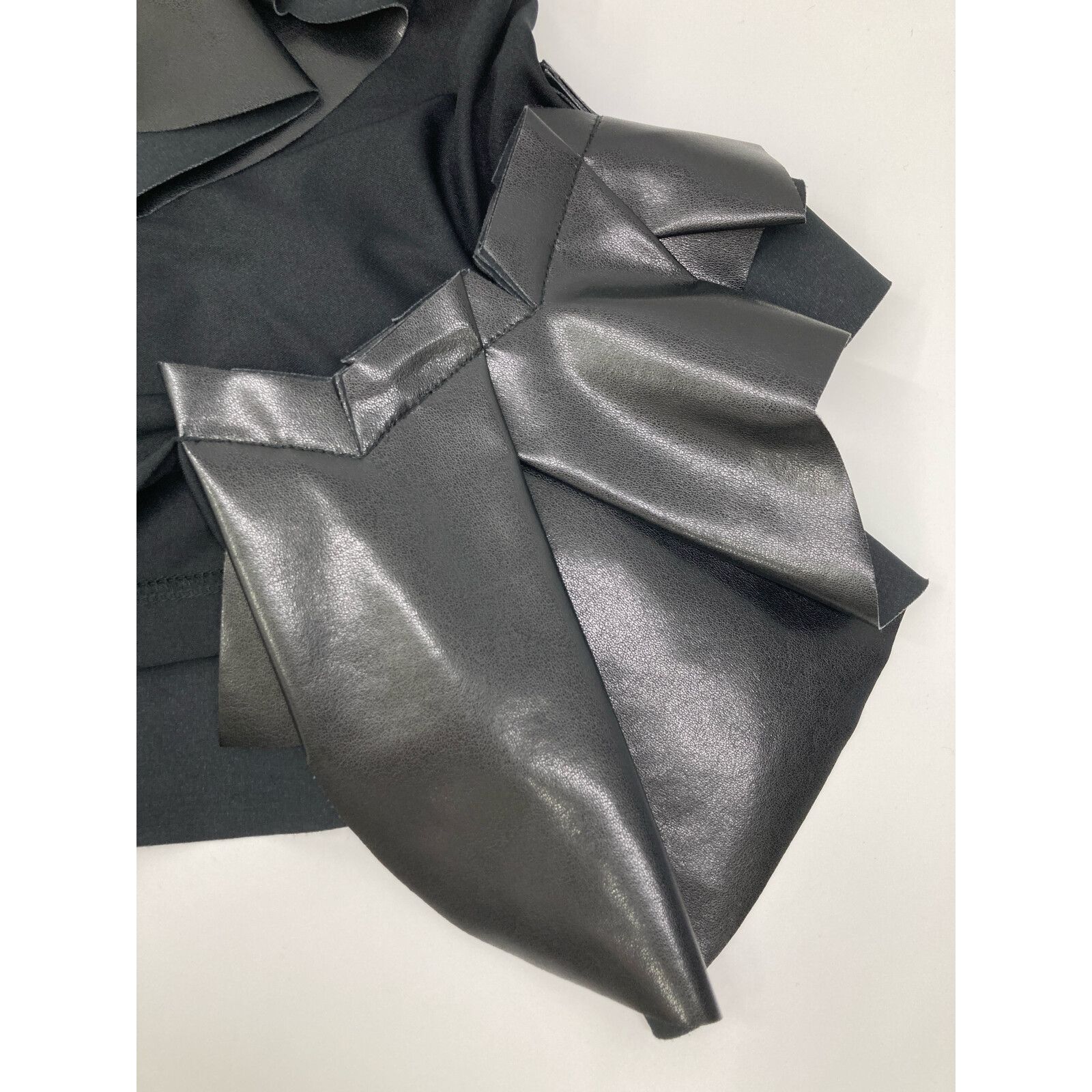 COMMEdesGARCONS コムデギャルソン ブラック GNーT 004 フェイクレザーアップリケフリルTシャツ M
