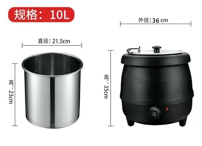 10 L 業務用 ステンレス鋼 食品用スープ釜ウォーマー業務用電気式スープウォーマー温度調整スープジャー スープ保温鍋 黒