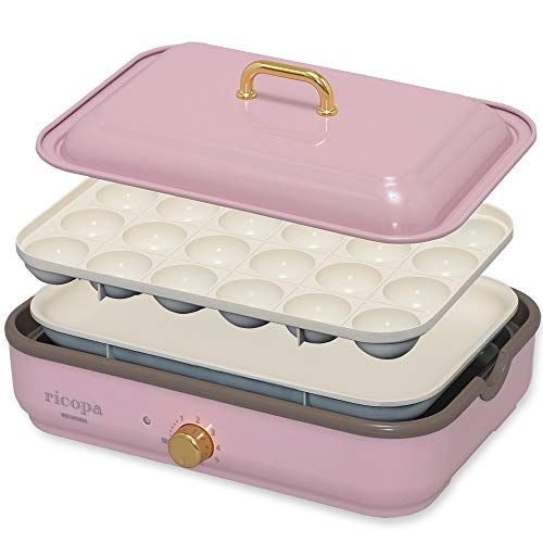アイリスオーヤマ ホットプレート 2WAY (たこ焼きプレート 平面プレート) ricopa アッシュピンク MHP-R102-PA