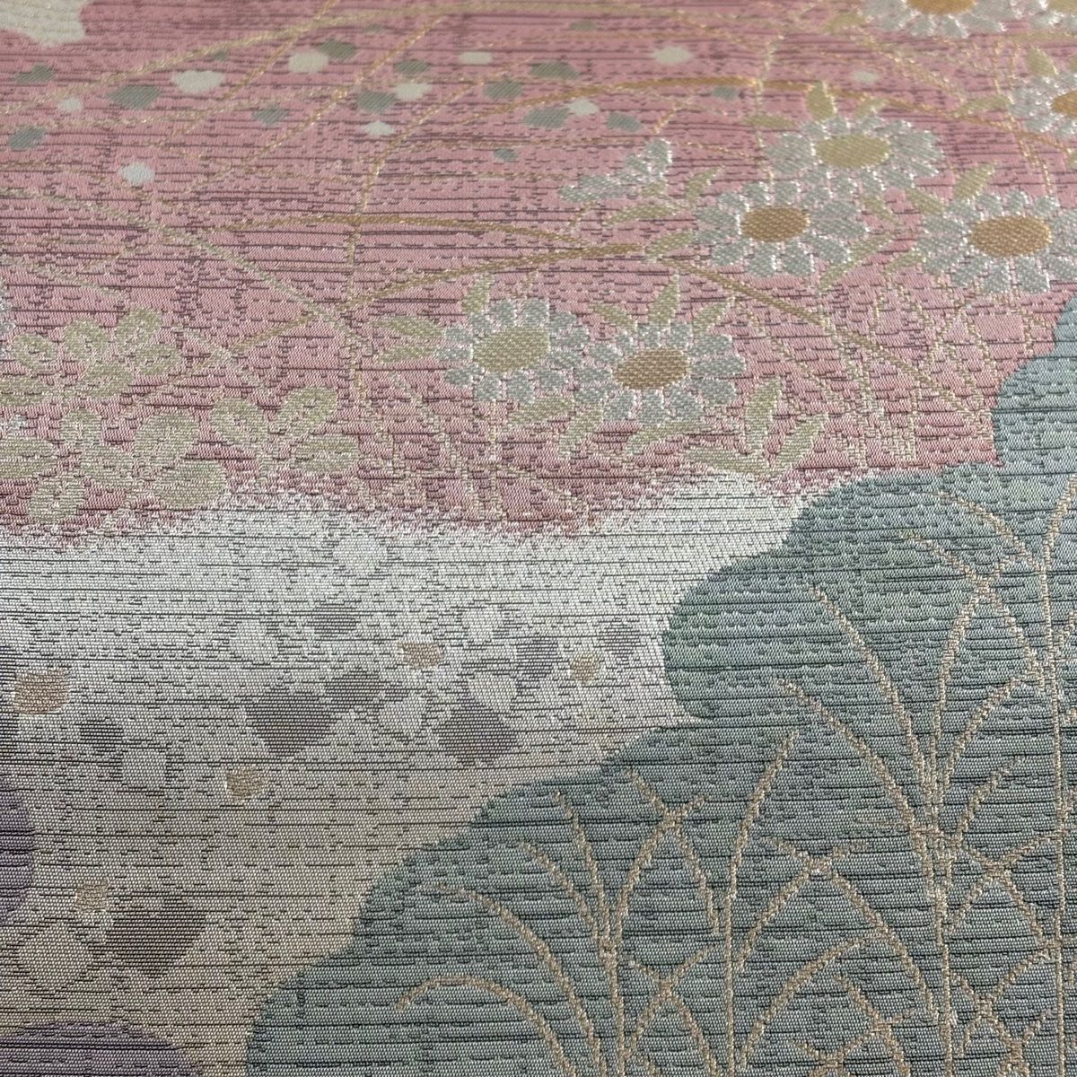 袋帯 秀品 草花 雲文 金銀糸 箔 薄ピンク 六通 正絹