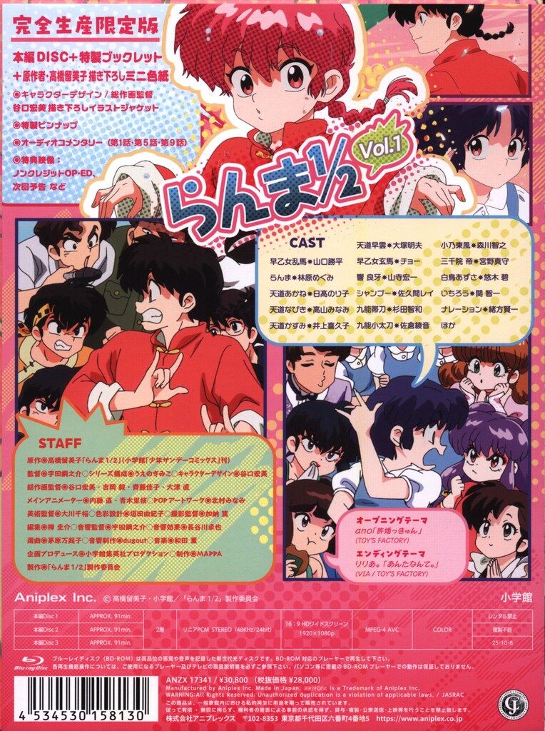 アニメBlu ray らんま1 2 Blu Disc BOX 完全生産 版 1