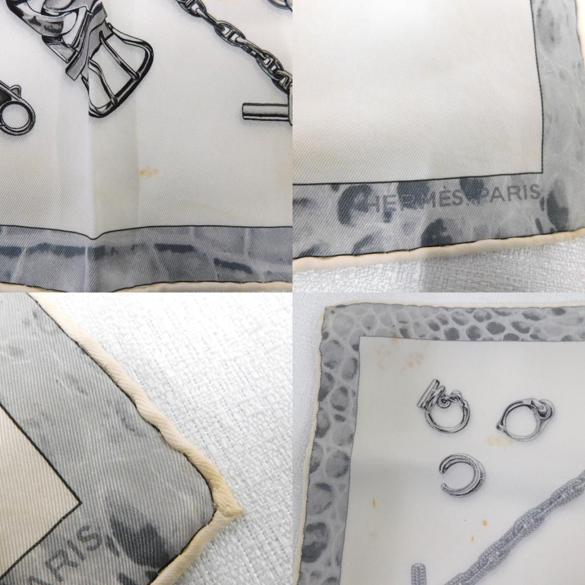 Hn 474861 スカーフ エルメス 大判 シェーヌダンクル柄 白地