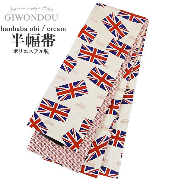半幅帯 浴衣帯 小袋帯 細帯 リバーシブル ポリエステル 仕立て上がり イギリス国旗 ユニオンジャック アイボリー 生成り色 女性 レディース 10代〜50代 60代 着物 浴衣 han-r 5-sei 2