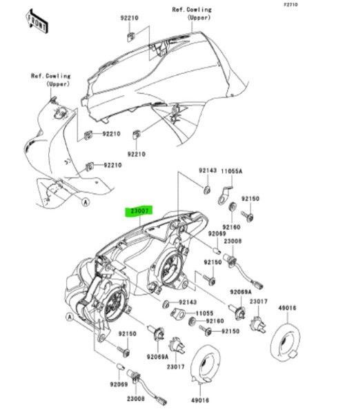 カワサキ ER-6 F ヘッドランプレンズ Lens - Comp Head Lamp 23007-0144 KAWASAKI JDM メーカー