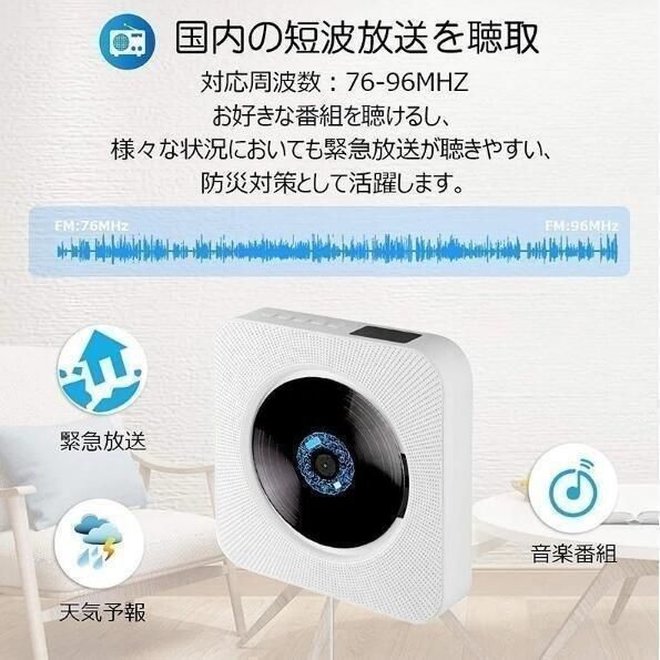 多機能CDプレイヤー:最新型Bluetooth CDプレーヤーは、Bluetoothモード/FMラジオ/USB再生/AUX入出力などの機能を備えています。CDを再生できるだけでなく、Bluetoothでスマホなどのブルートゥース設備と繋いでスマホに入ってる曲を聞くこともできます、更に、SDカードやUSBもサポートしています。76KHz-90MHzの周波数を対応して、モバイル電源で給電すれば、実用的な防災ラジオとしても使えるコンパクトなcdプレーヤーです。