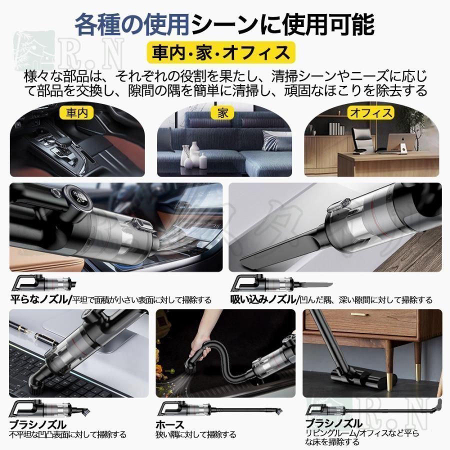 掃除機コードレス車両用強力吸引軽量ハンディ掃除機48000 Pa充電式 サイクロン式USB-TypeC充電式スティック5 WAY