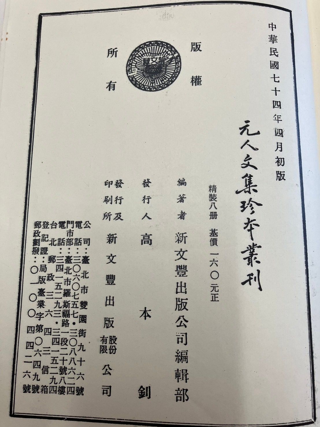 元人文集珍本叢刊 全8巻揃 新文豐出版 DH 1-4