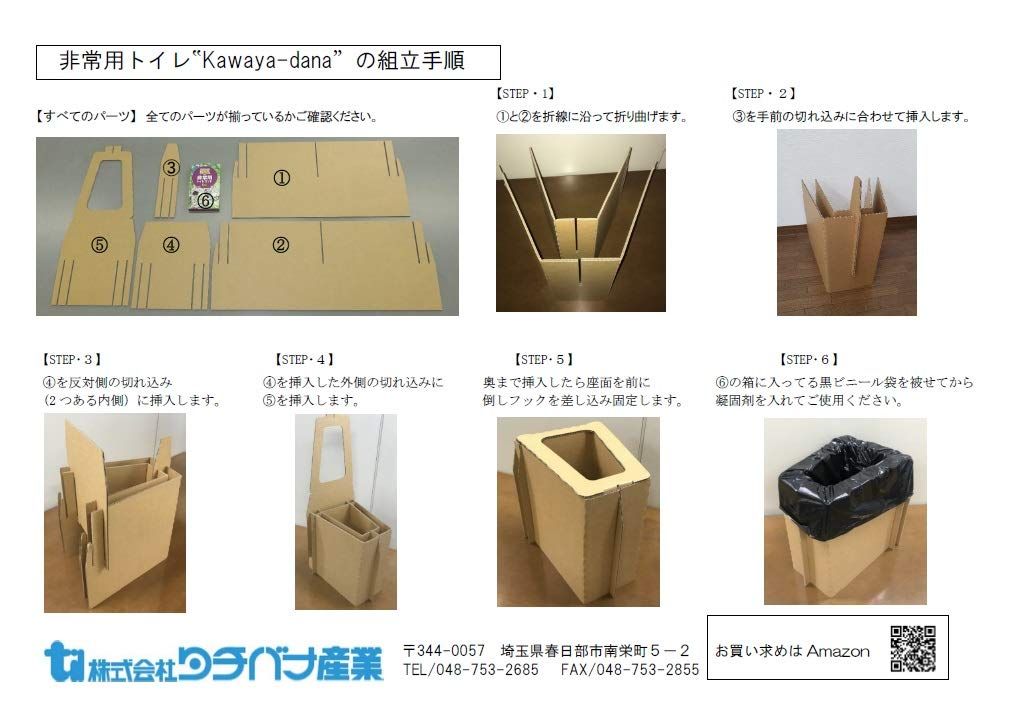 カワヤダナ 15回分 簡易トイレ BOS トイレ 防災グッズ 在宅避難 kawaya dana 防臭袋 アウトドア キャンプ 使い捨て 渋滞 非常用トイレセット 凝固剤 汚物袋 地震 避難所 タチバナ産業