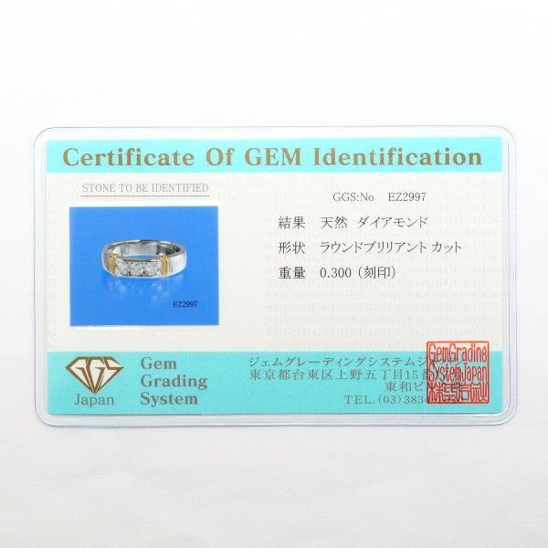 PT 900 K 18 YG リング ring 指輪 11号 ダイヤ 0.300 カード鑑別書 総重量約7.0 g