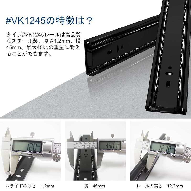 商品名:VADANIA ソフトクローズ スライドレール 450mm 3段引 ボールベア 伸縮式 引き出しスライドレール 左右5セット