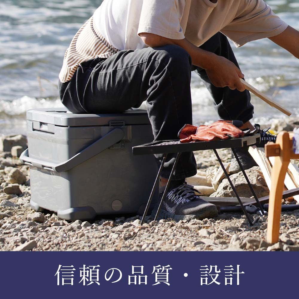取り外し可能な両開き蓋や手を濡らさず排水できる水栓、細菌の繁殖を抑える抗菌仕様などの実用性と高い保冷力を備えた、あらゆるアウトドアシーンで活躍するクーラボックスです。