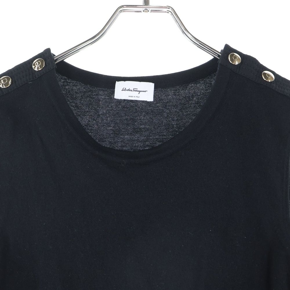 Salvatore Ferragamo サルヴァトーレ フェラガモ ショルダーボタンデザイン ノースリーブニットシャツ レディース ブラック