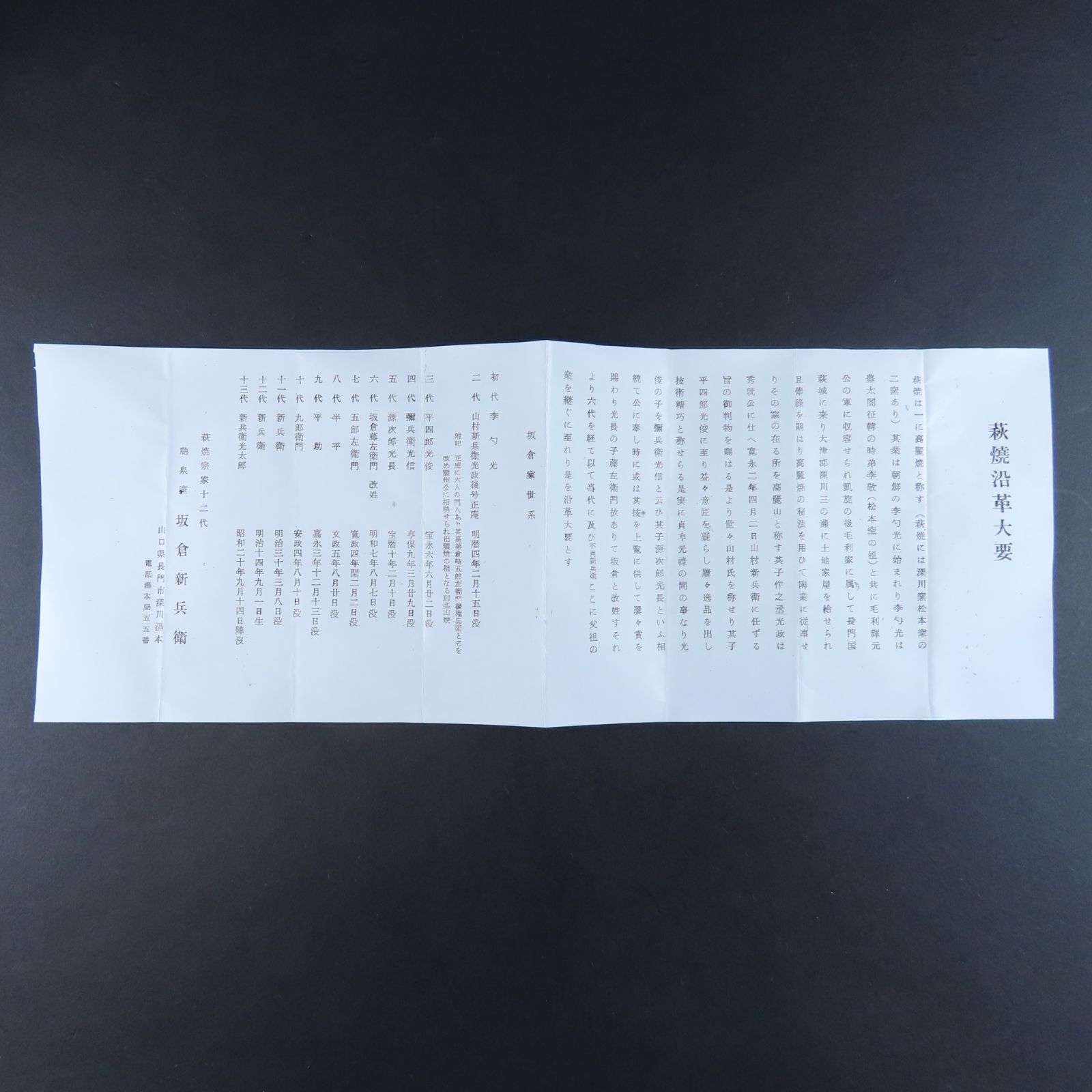 12代坂倉新兵衛は11代坂倉新兵衛の長男として山口県長門市に生まれました。本名を平吉といいます。