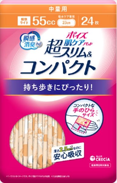 -24点セット ポイズ 肌ケアパッド 超スリム&コンパクト 中量用 紙クレシア 生理用品