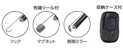 ●先端ツール フック、マグネット、側視ミラー