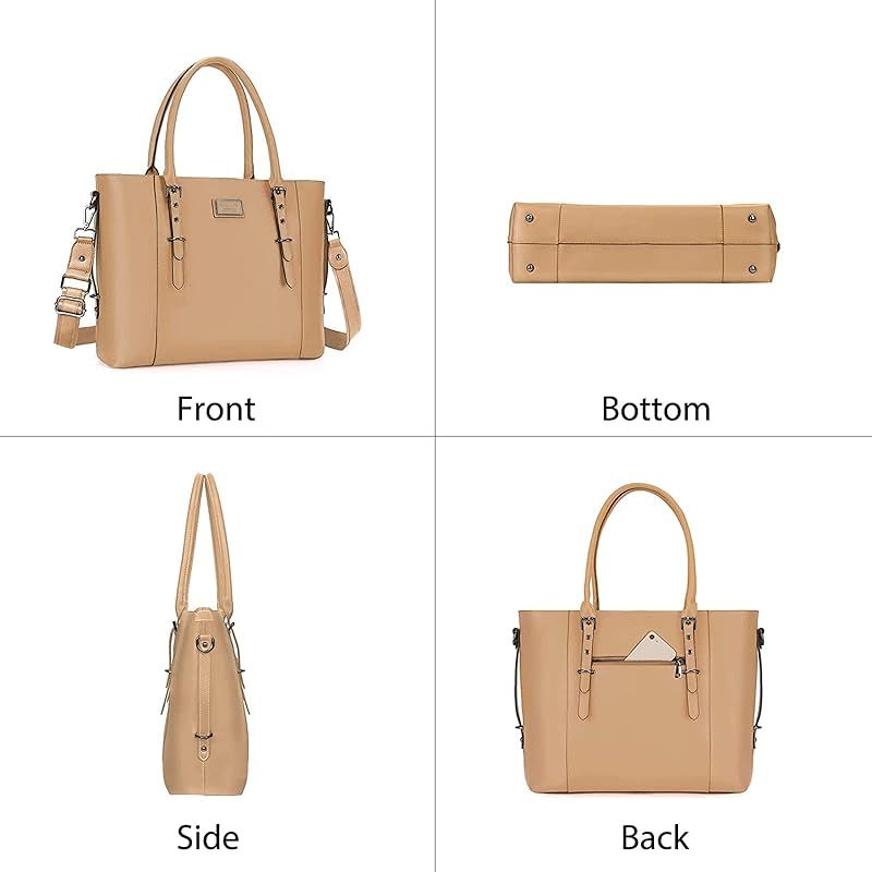 MOSISO ラップトップトートバッグ 女性用 17-17.3 インチ 防水 PUレザー 手提げバッグ ショルダーバッグ 杏色 0
