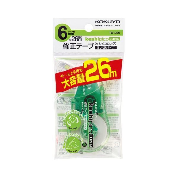 まとめ コクヨ修正テープ ケシピコロング 6 mm幅 26 m 緑 TW 296