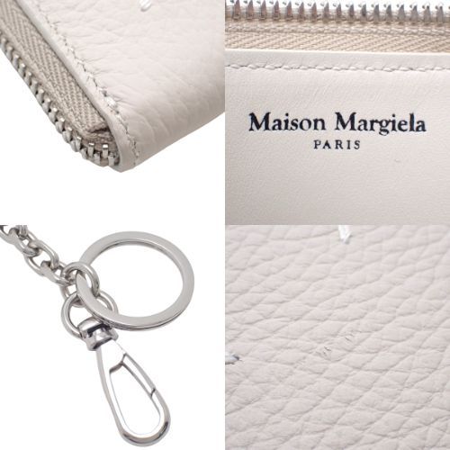 Maison Margiela メゾン マルジェラ キーリング ウォレット コインケース ミニ財布 カードケース 小銭入れ レザー オフホワイトアイボリー シルバー金具 ユニセックス アラモード