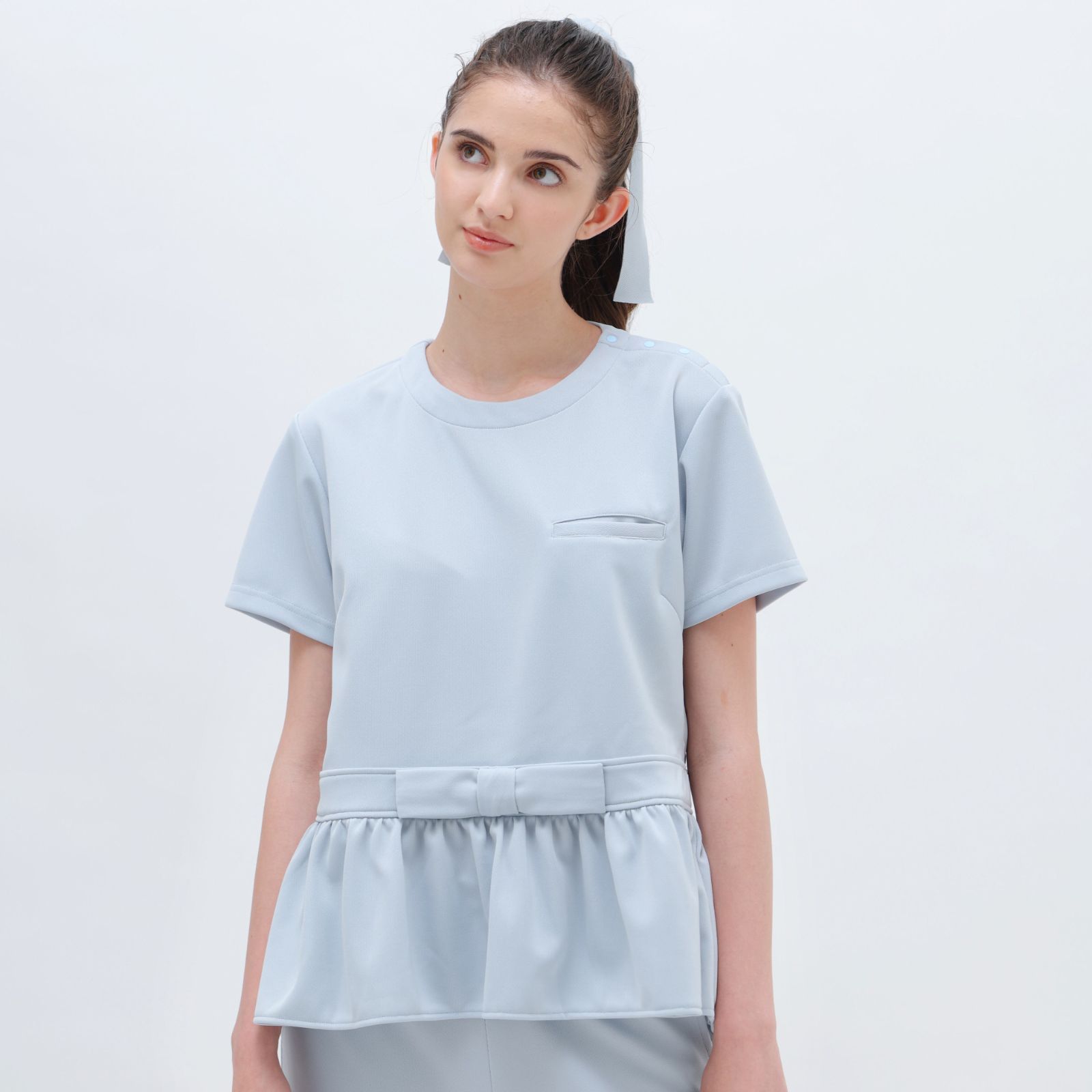 医療スクラブ 医療ユニフォーム おしゃれスクラブ Ribbon Peplum Shirt_
