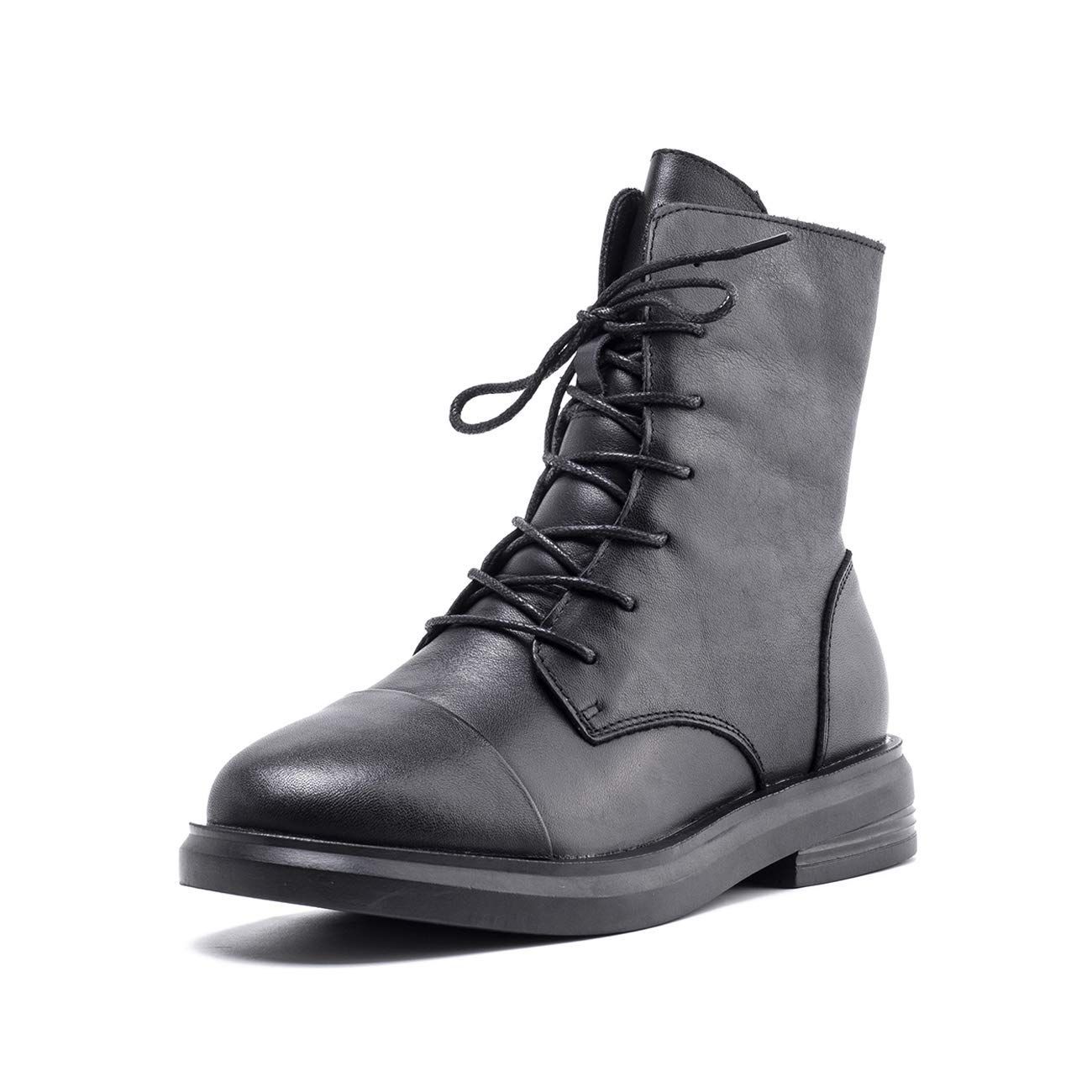 24.0 cm_ブラック ZUYEE ズイェ レディース レースアップブーツ 本革 ローヒール サイドジップ 編み上げブーツ ショートブーツ ブラック cm