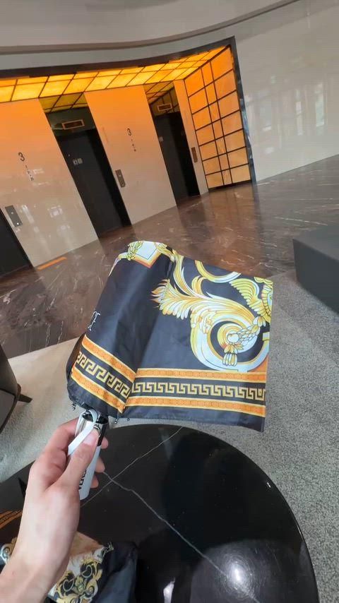 これはヴェルサーチのシグネチャープリント傘とパラソルです。