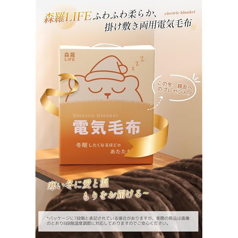 【細やか温度調節・1~12Hタイマー】森羅電気毛布は、数分での急速温めと、「35/38/41/44/47/50/52/55℃」の数段階できめ細かく温度調節可能。冷え性で悩む方から暑がりの方まで、自分好みの温度をワンタッチで設定できます。また、1~12Hの切り忘れ防止タイマーで、寝る前にセットするだけで朝まで安心してぐっすり眠れます。