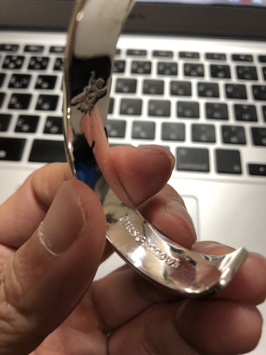 福岡 FIRST ARROW S ファーストアローズ K 18付 平打12 mmカラ草彫り バングル ブレスレット シルバー950 BR-026 FK