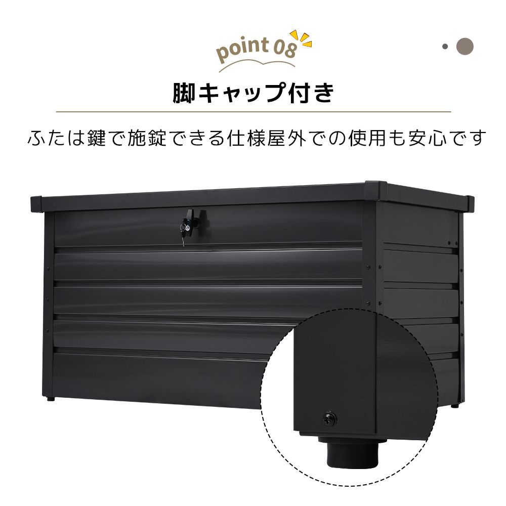 【安心の鍵付き】ふたは鍵で施錠できる、仕様屋外での使用も安心です。