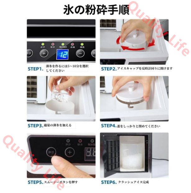 ? 【幅広い用途】 高速製氷機は家庭用と商用の両方に対応しており。ステンレス素材を使用しています。 様々な用途でお使いいただけます。ご家庭でも、パーティーでも、商用でも使用できます。夏に、氷で飲み物を飲むと、アイス寿司や刺身に使って、アイシーな楽しみましょう。日本語の取り付けおよび使用説明書が付属しており、安心してご使用いただけます。
