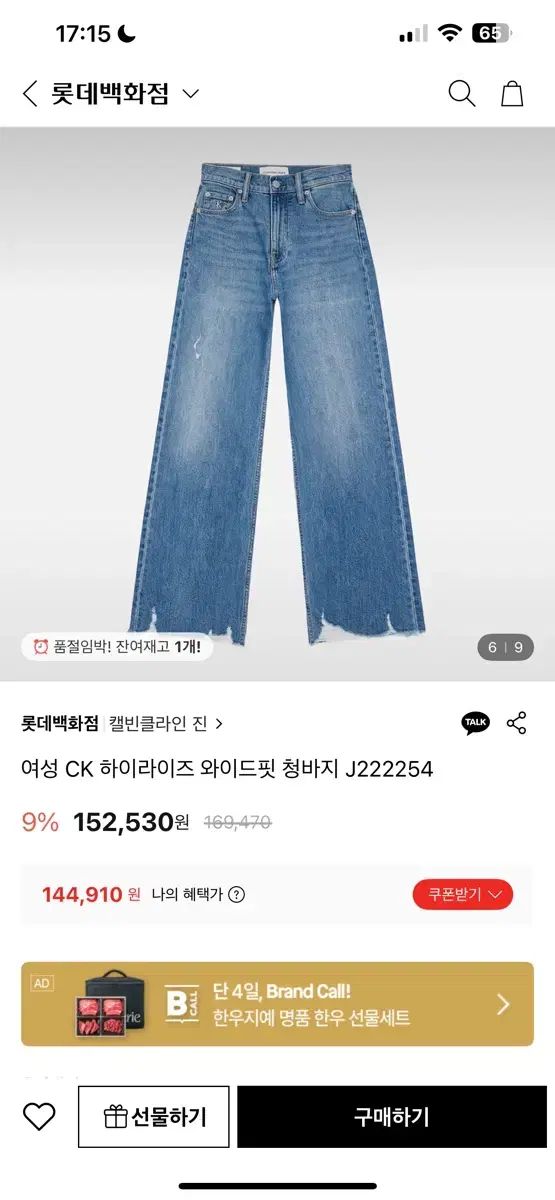 CK ハイライズワイドジーンズ J222254
