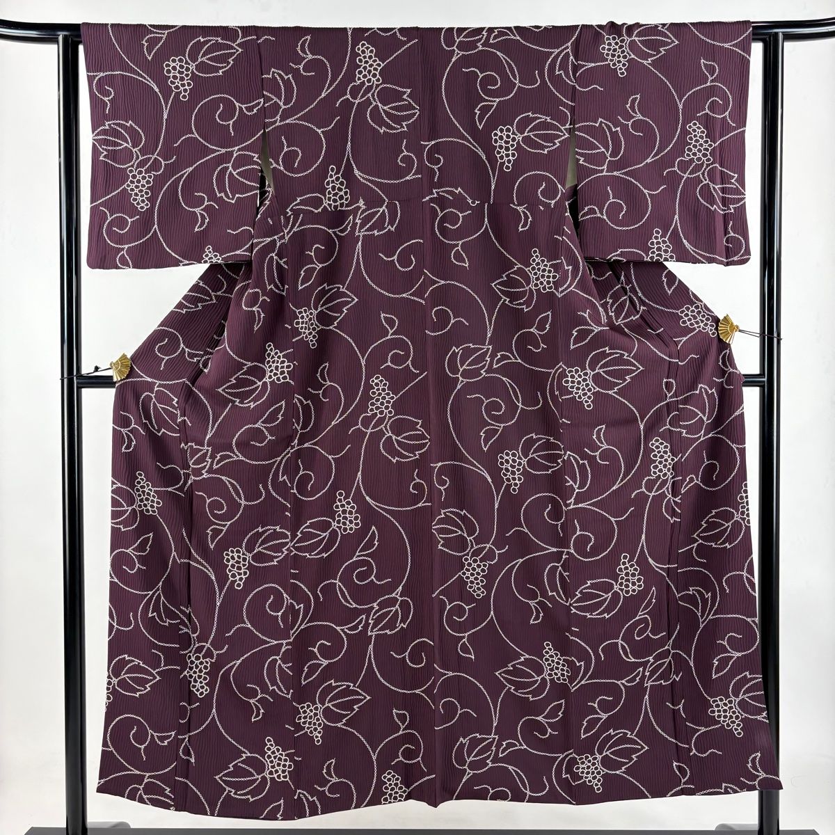 小紋 身丈151 cm 裄丈63 S 袷 葡萄唐草 刺繍 濃紫 正絹