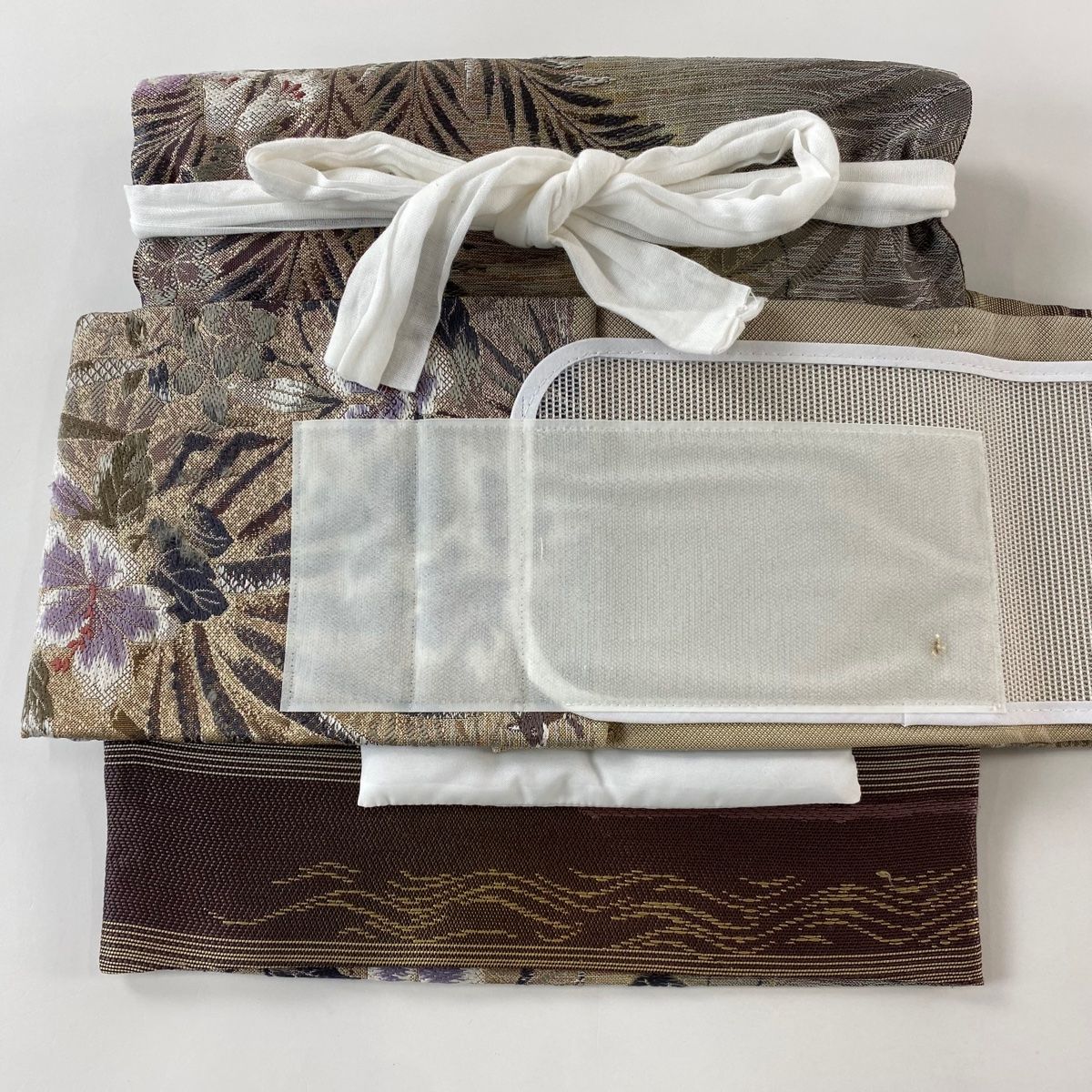 付け帯 秀品 作り帯 やまと 草花 鳥 刺繍 箔 薄茶色 正絹