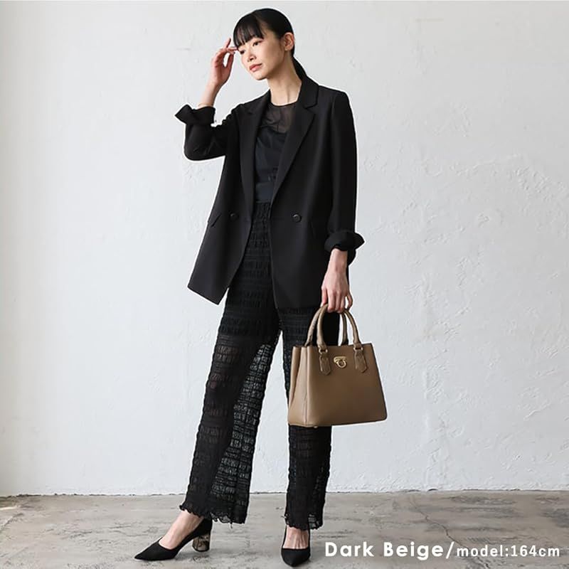 3スペース2wayトートバッグ オコシ金具がアクセントに、知的さとリッチ感をプラス。 ●フォーマルからカジュアルまで◎ 前面のリング型オコシ金具が上品なアクセントに。キレイめコーデにもカジュアルスタイルにも馴染み、幅広いシーンで活躍します。 ●軽くて扱いやすいPU素材 見た目は高級感がありながら、耐久性に優れたPU素材を採用。お手入れが簡単で雨の日でも気軽にお使いいただけます。 ●2WAY仕様で自由自在な使い方 ハンドル付きで手持ちはもちろん、ショルダーストラップを使えば肩掛けや斜め掛けにも対応可能。シーンやスタイルに合わせて使い分けられる便利な2WAY仕様です。 ●自立&底鋲付きで使いやすさ抜群 バッグは自立する設計なので、置いたときも型崩れの心配がありません。底鋲が付いているため、汚れや傷がつきにくく、長くきれいにお使いいただけます。 ●整理整頓しやすい3つの収納スペース 内部は3つの収納スペースに分かれており、荷物をスッキリと整理整頓できます。充実したポケットで鍵や小物も迷子にならず、取り出しやすい設計です。