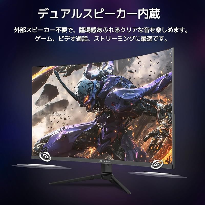 商品名:CRUA ゲーミングモニター 27インチ WQHD 2560x1440 180Hz 湾曲モニター 1800R ディスプレイ HDMI2.0 & DP1.4 ブルーライト軽減 傾斜調整 広い視野角 壁掛け対応
