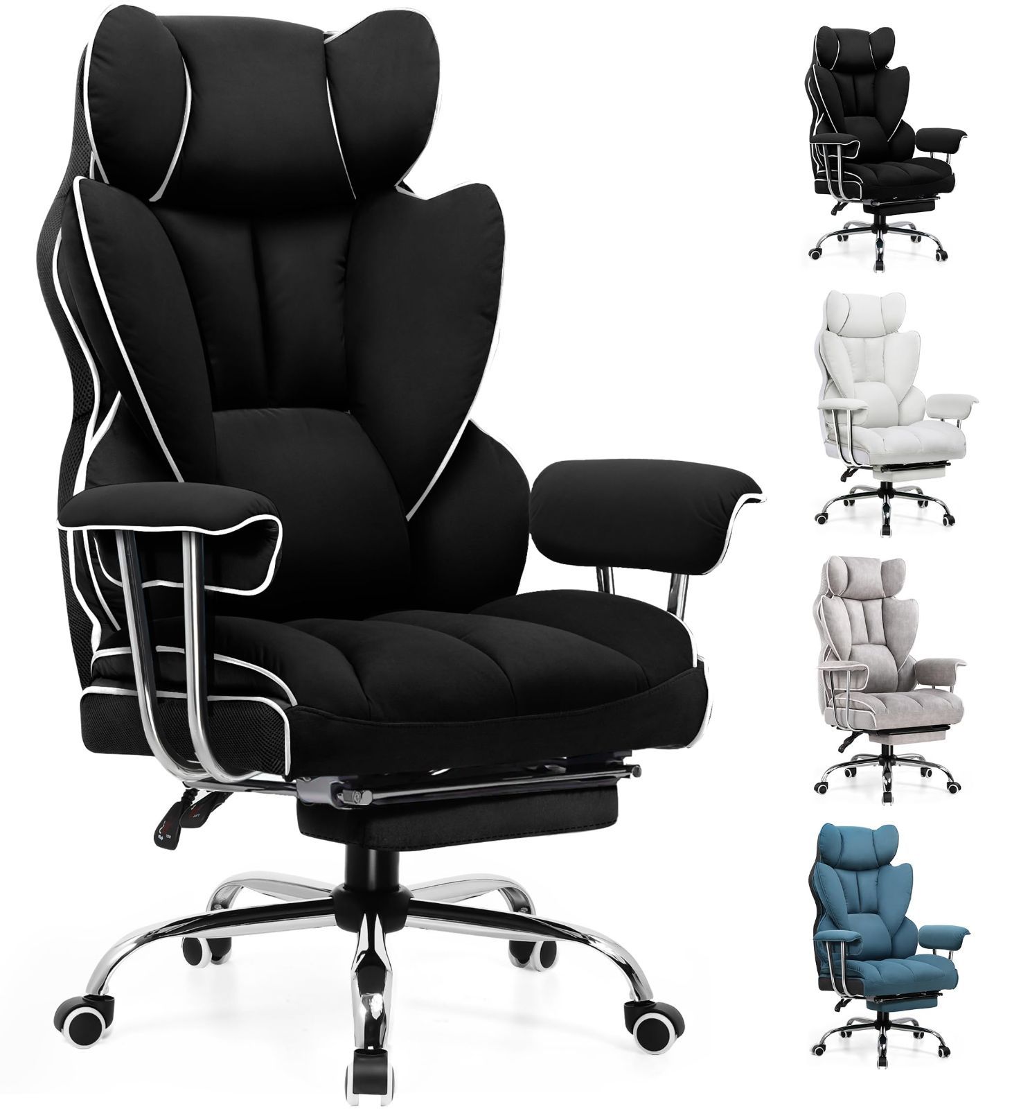 GTRACING ゲーミングチェア ファブリック オットマン 椅子 イス テレワーク 腰痛対策 pcチェア デスクチェア 蒸れない ソファーの座り心地 【ふわふわPP綿採用】 【安心の非再生ウレタン採用】【ポケットコイル採用】 分区サポート 肉厚クッション 140度リクライニング 広い座面 ハイバック 高さ調節 200-BLK