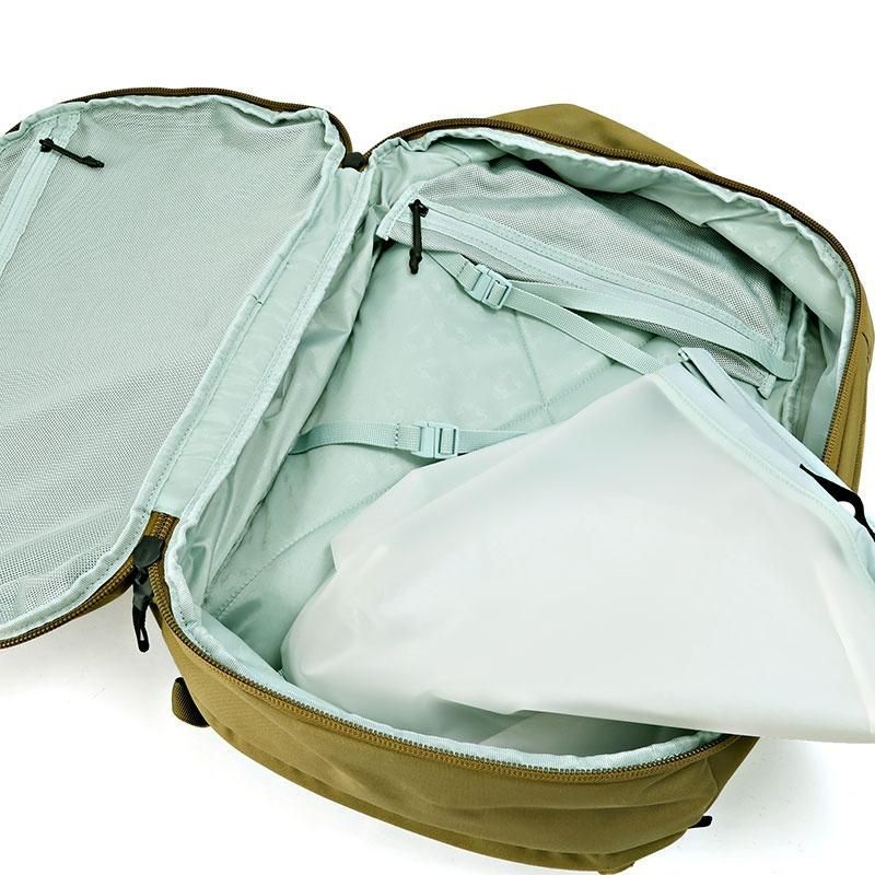 取り外し可能なロールトップバッグが特徴で、最大容量でありながら機内持ち込みに対応しており、空の旅には最適なバックバックです。取り外し可能なTPUロールトップバッグは、使用後はしまっておくことができ、におい、汚れ、湿気がバッグの中に広がることなくアイテムを収納可能。ジッパー付きの上部ポケットは手の届くところに収納でき、小物アイテムを守ります。パッド付き収納ポケットには16インチPC/16インチMacBook、および12.9インチタブレットを収納可能。外装シェルの生地、ライニング、メッシュはペットボトルを再利用したリサイクルポリエステル100%を使用。600D防水ワックスキャンバス素材のシェルの生地は耐久性が高く、有害なPFCを含有しない耐水コーティングによって、湿気、汚れ、シミを寄せ付けません。ご自身用にも、プレゼントにもオススメです。