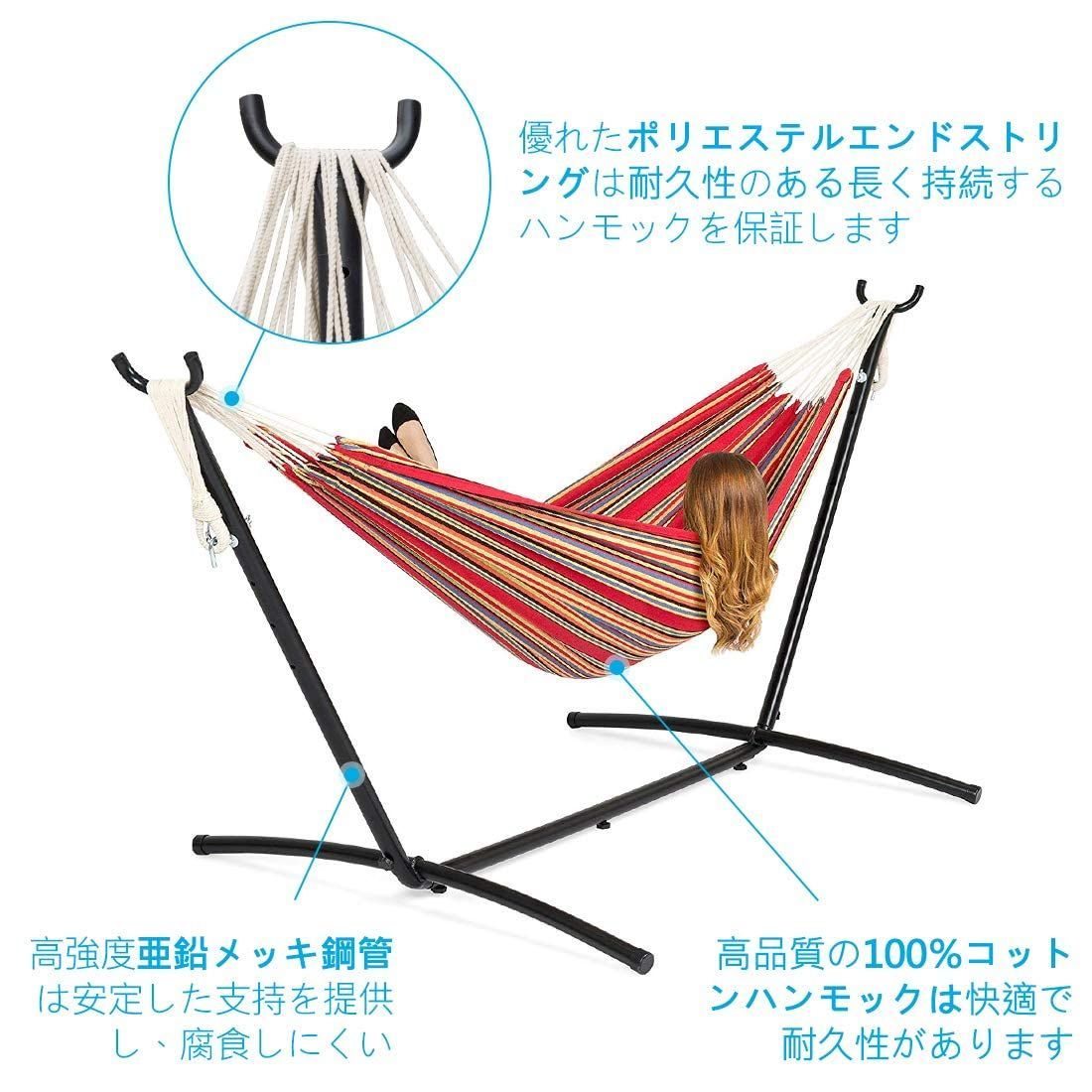 LifeFair ハンモック 自立式スタンドセット ダブルサイズ 室内 室外 兼用 収納バッグ付き耐荷重300kg