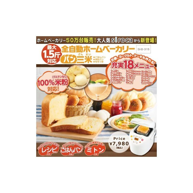 siroca ヨーグルト パスタ生地も作れる 餅 米粉 ご飯パン対応 ホームベーカリー SHB-315 1