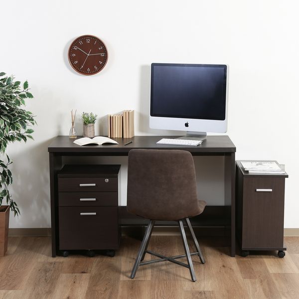 デスク・サイドチェスト・サイドラックがセットにおり、デスクワークを快適に行えます。幅120×奥行59cmの天板は、パソコンを置いても本を広げられる広さで、快適に作業ができます。デスクの下には、本やDVDなどを収納できるスペース。背板がついており、後ろへ落ちてしまうのを防ぎます。3つの引き出し収納があり、高さに合わせて使い分けができます。キャスター付きで移動もラクラクです。サイドチェストの一番上の引き出しはカギ付きで、大切なものはここで管理できます。オープン収納に加え引出しもついているので、収納力バツグンです!オープン部分は高さ調整可能な可動棚仕様です。