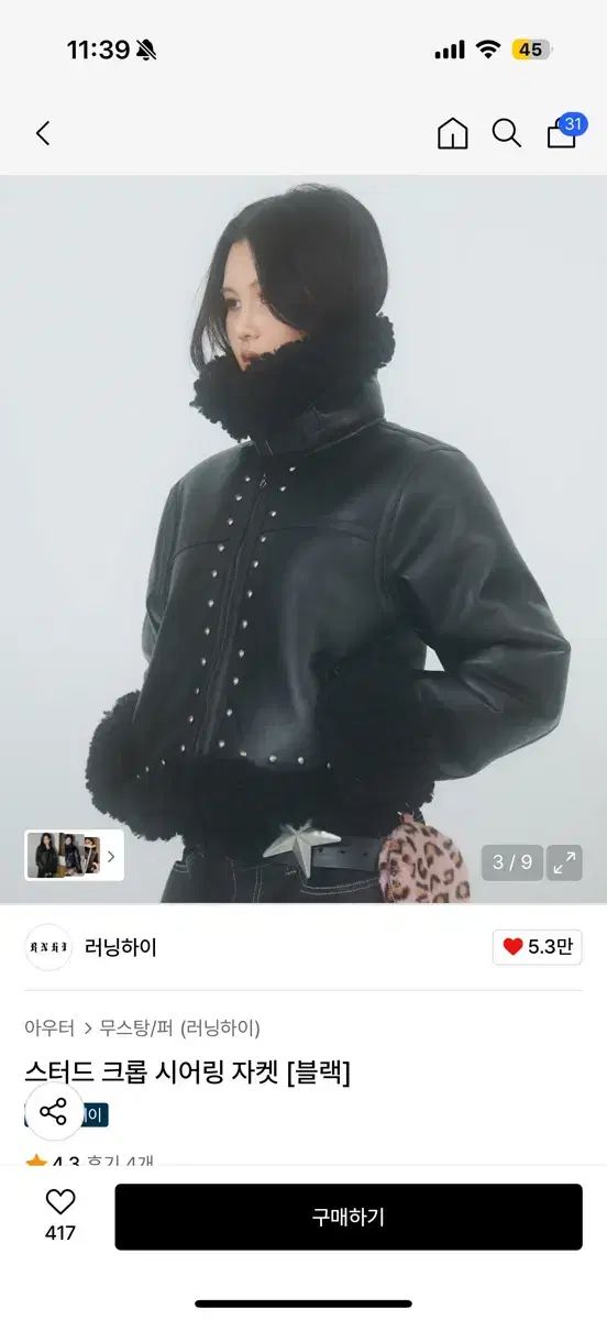 RUNNING HIGH スタッズ クロップド Shearling ジャケット 出品. 1回 着用 して 状態 傷なし です. コメント 無ければ すぐに 安全決済 して いただければ 結構です!