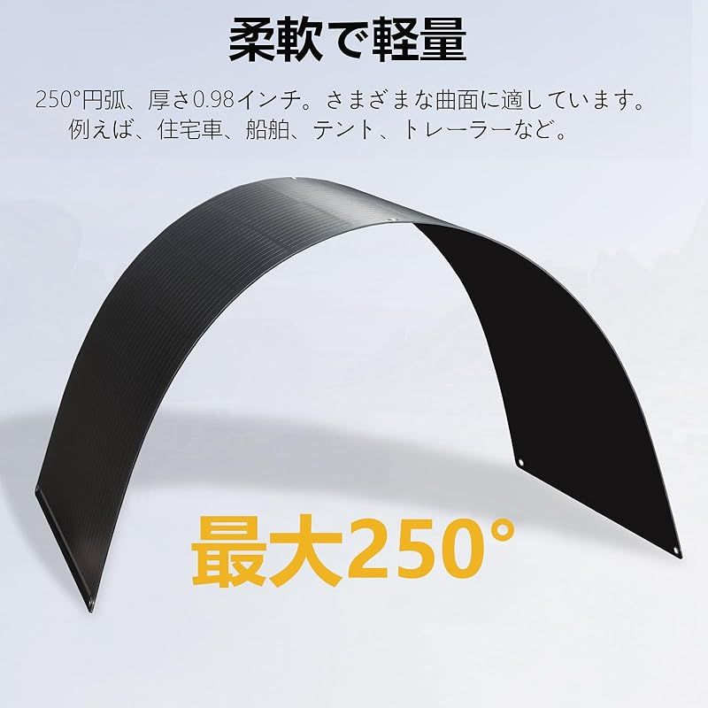 フレキシブルソーラーパネル 100 W 太陽光パネル 単結晶 超薄型 超軽量 250°曲げる RV 車中泊 屋根 ベランダ 船 ボート キャンピングカー 地震停電 防災予備品 非常用 ソーラーパネル 黒