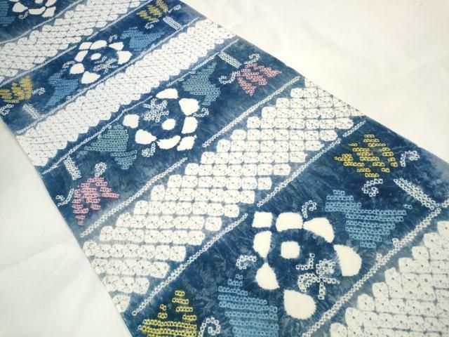 平和屋着物 夏物 浴衣 有松鳴海絞り 反物 着尺 横段花文 綿 zzz