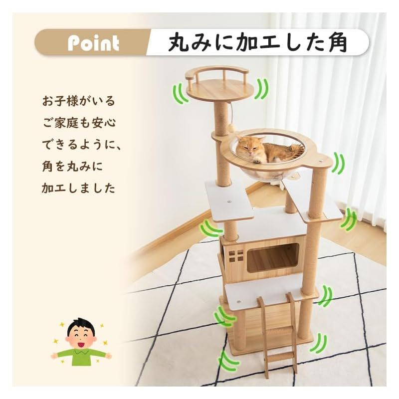 \滑り止めマット/ 新品登場 キャットタワー 木製 据え置き おしゃれ 木目 省スペース 宇宙船 高さ147cm 猫タワー 大型猫 シニア猫 多頭飼い 猫ハウス 壁際ぴったり 上りやすい 成猫 キャットツリー 展望台 木目調 クリアボウル 安定性 インテリア性 ストレス発散 運動不足解消 登りやすい コーナー 隠れ家 狭い部屋向け サイザル麻 爪とぎ 爪研ぎポール スクラッチ