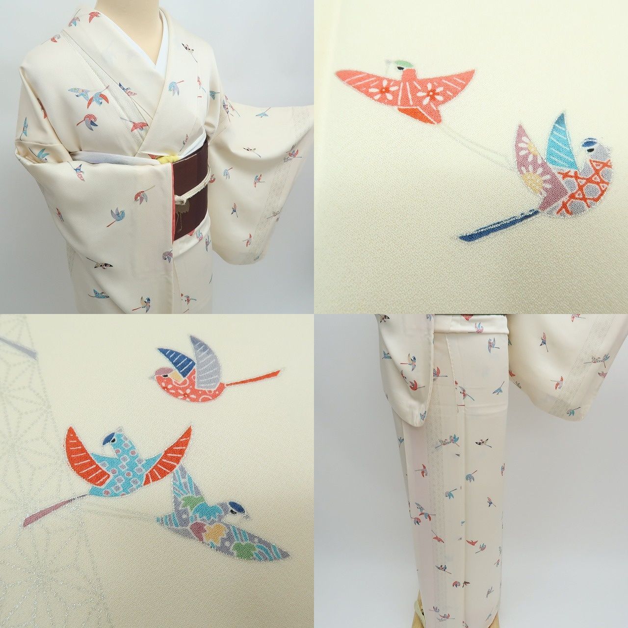 ✾まめ藤✾m2307 正絹 麻の葉 カラフルな雀 手縫い仕立て 小紋