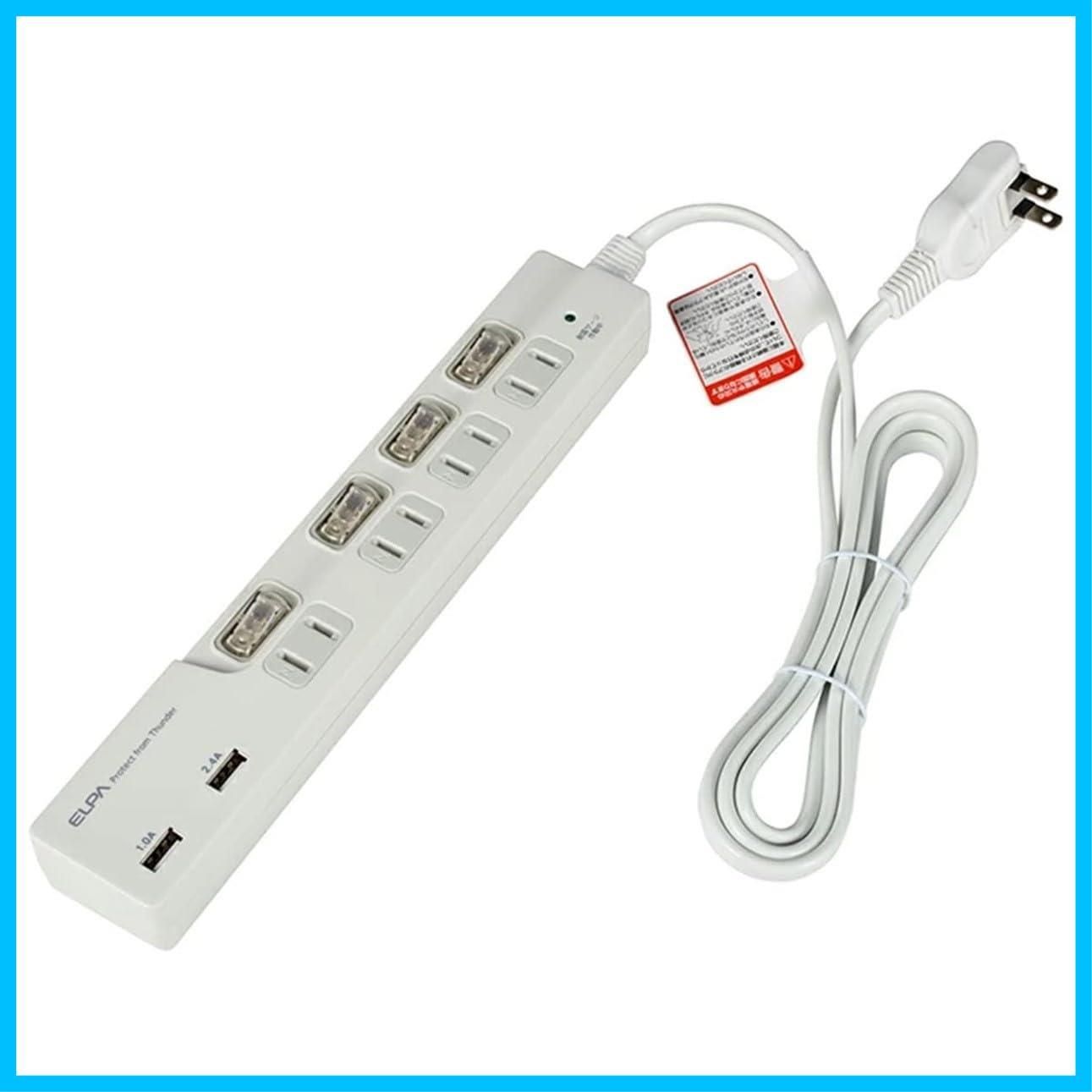 延長コード 口 電源タップ 2 m スイッチ付タップUSB 3.4 A ELPA WBS-LS 42 USB W エルパ